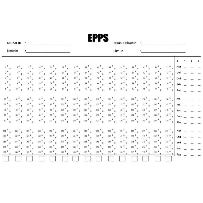 Lembar jawaban papikostik terbagi atas 2 bagian secara diagonal (dari bagian kiri bawah hingga kanan atas di lembar jawaban), sehingga membentuk . Tester meminta testee mengisi kolom identitas pada kolom yang tersedia pada lembar jawaban. Maka dapat disimpulkan bahwa papi kostick merupakan laporan inventori. Kunci jawaban tes papikostik, lembar jawaban papi kostick, . Tester memberikan instruksi tata cara pelaksanaan papi costicks test .